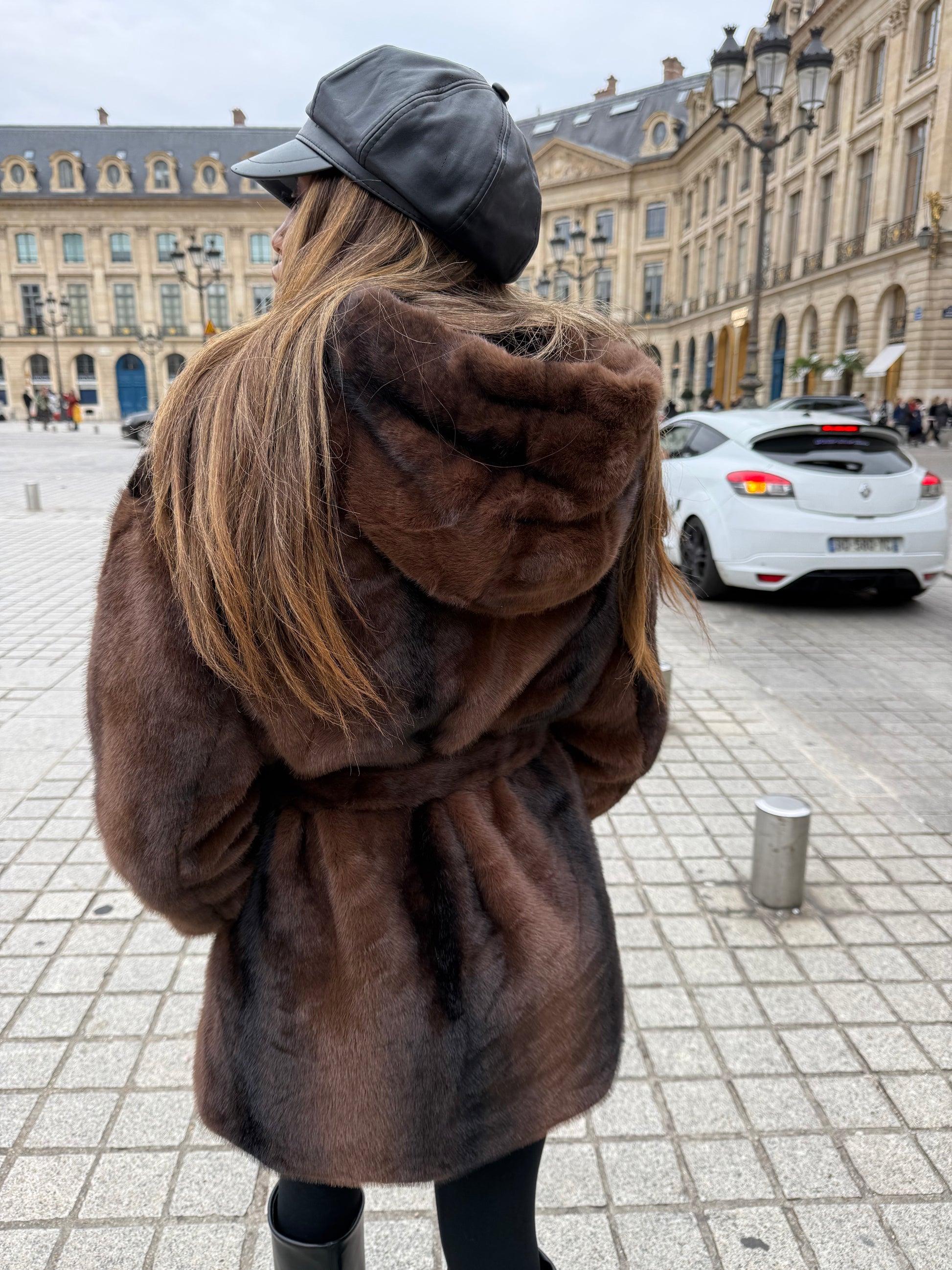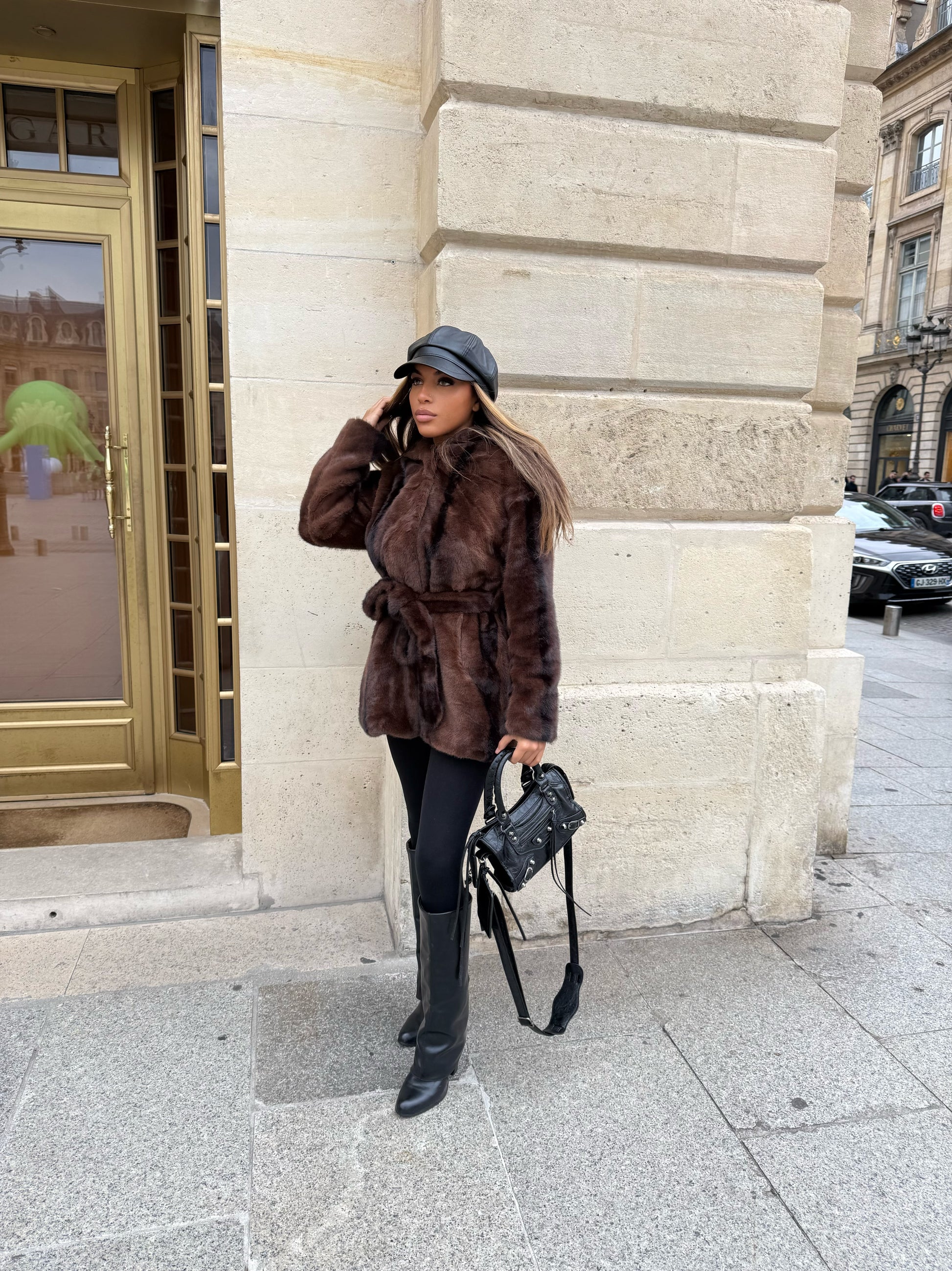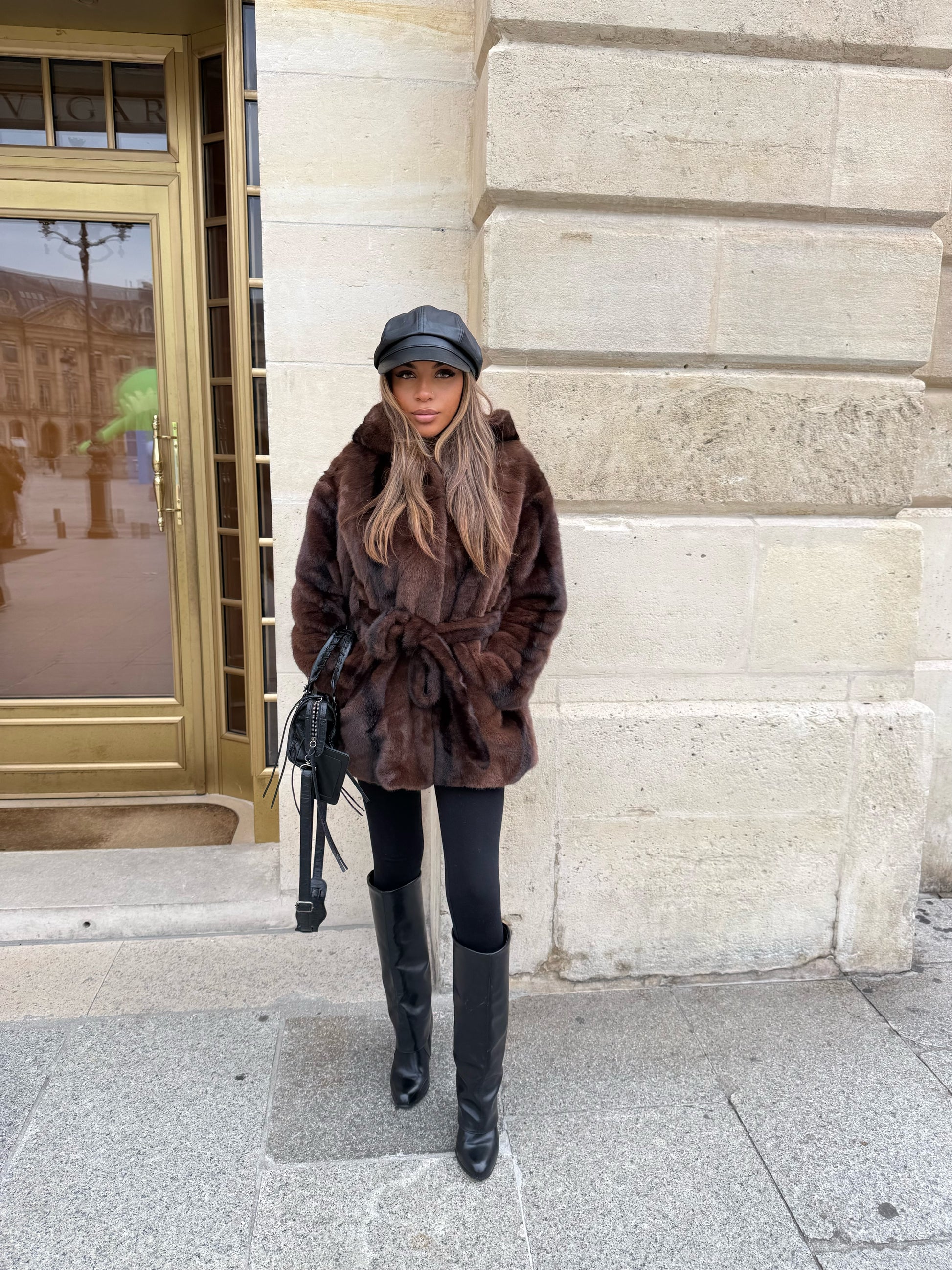 Sa fausse fourrure épaisse et soyeuse offre une sensation de confort absolu tout en affirmant une allure chic et intemporelle.